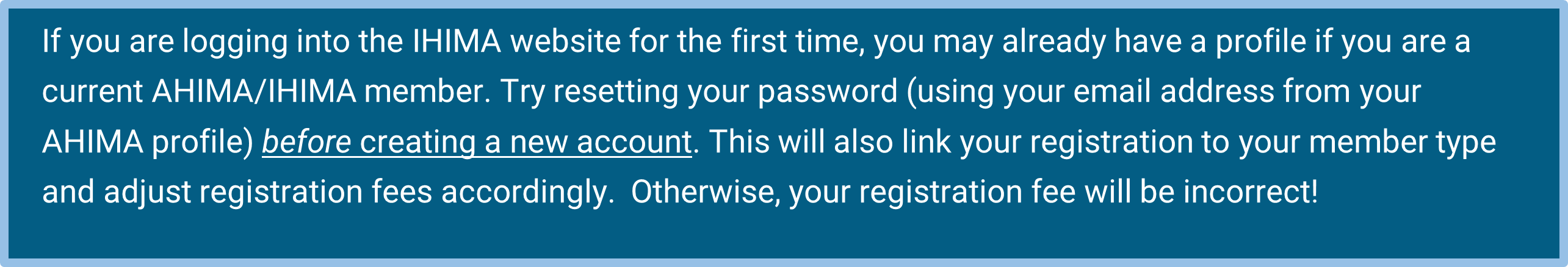 Registration is fully ONLINE. Credit cards and checks are accepted forms of payment for registration. Registration rates will automatically calculate based on your member status. Log into your IHIMA profile to take advantage of member rates! For the IHIMA member rate, you must be a 2026 Professional AHIMA/IHIMA member. Other discounted registration rates (Student and Emeritus) are based on your AHIMA/IHIMA member type. If you have questions about your member type or believe that your member type is incorrect in your IHIMA profile, please contact the IHIMA Central Office. Registration rates will automatically calculate based on your member type.